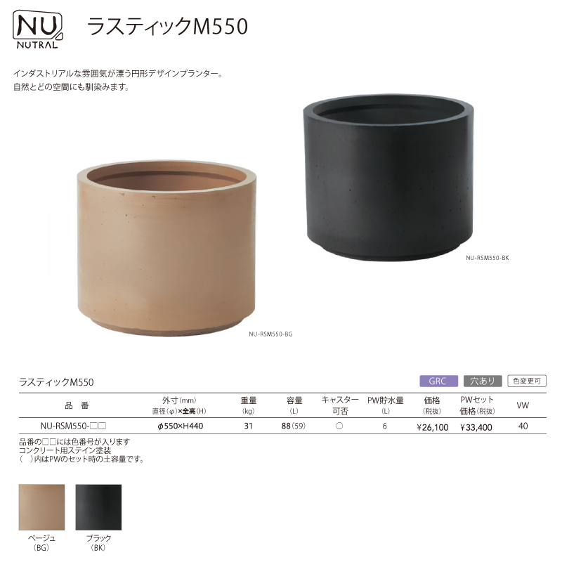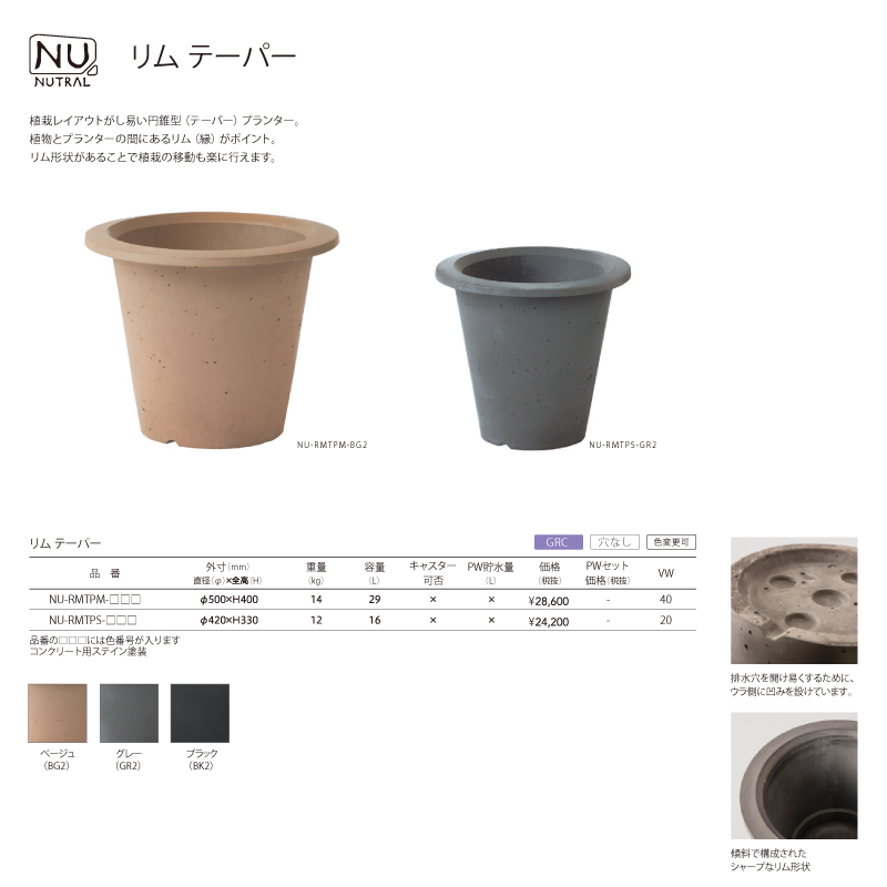 植栽レイアウトがし易い円錐型(テーパー)プランター。植物とプランターの間にあるリム(縁)がポイント。