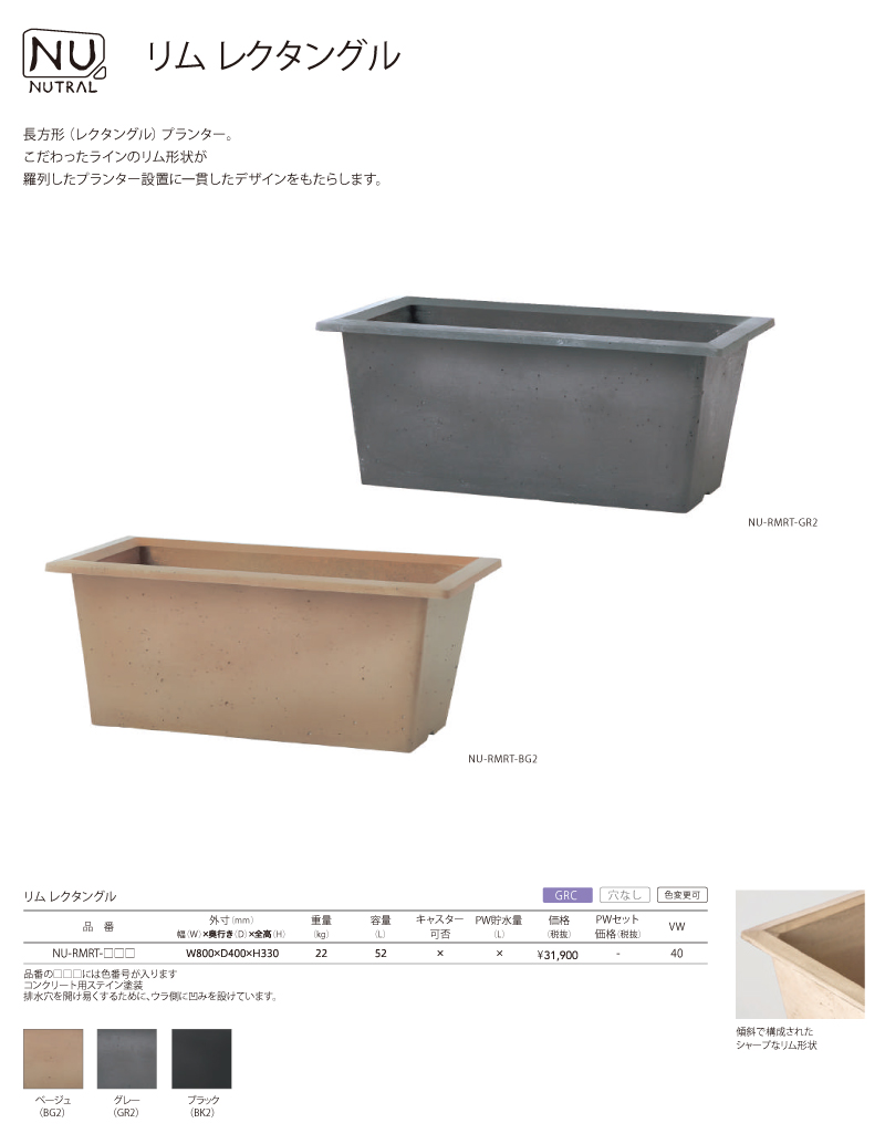 こだわったラインのリム形状が羅列したプランター設置に一貫したデザインをもたらします。