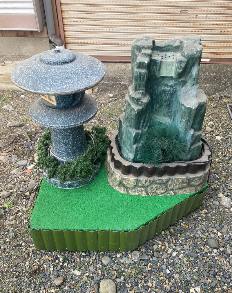 モーター稼働の水車、灯篭やつくばい、前当てなど和風の道具系アイテムです。 和風の料理屋、旅館などのディスプレイにも。